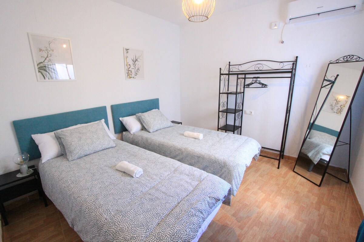 Apartamento a 15 minutos andando del centro,muy luminoso, totalmente decorado y equipado con todos losdetalles para hacer su estancia lo mas confortable. Consta de cocina totalmente equipada,un dormitorio con dos camas individuales de 90 ,mesa de trabajo, armario empotrado y TV smart .Dormitorio de matrimonio con cama de 1'50m y armario empotrado y TV smart , salón amueblado con zona wifi, televisión smart, terraza y ascensor.