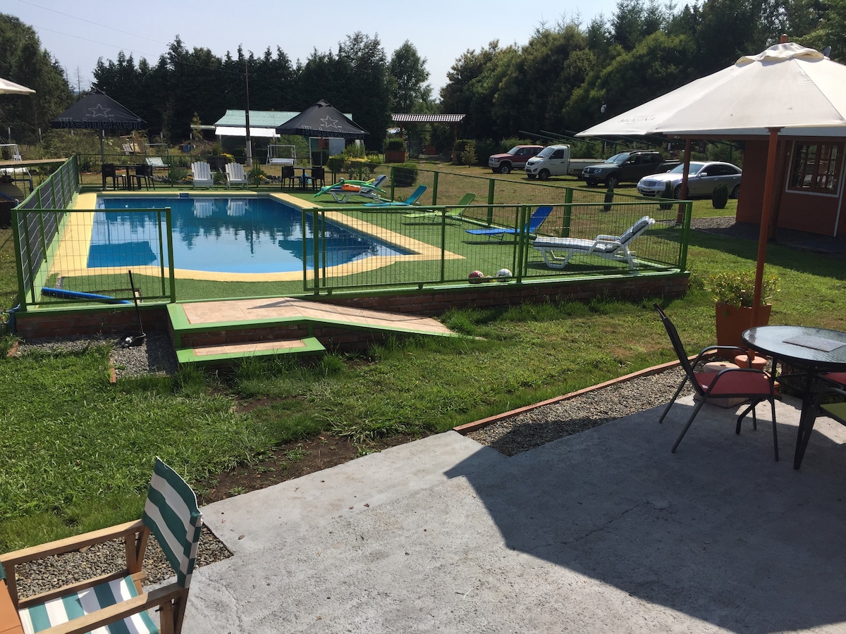 Estamos en una Parcela de agrado y consta de 5 Cabañas, piscina al aire libre, amplios jardines, varias terrazas, quinchos. Todos los pasajeros tienen los mismos beneficios, estacionamiento, recinto totalmente cerrado y privado, portones eléctricos y nadie ingresa sin sus llaves respectivas. A 5 minutos (6 Km.) centro de la Ciudad, transporte publico cada 15 minutos y estamos a 50 mts. de la Ruta principal en acceso a la ciudad.