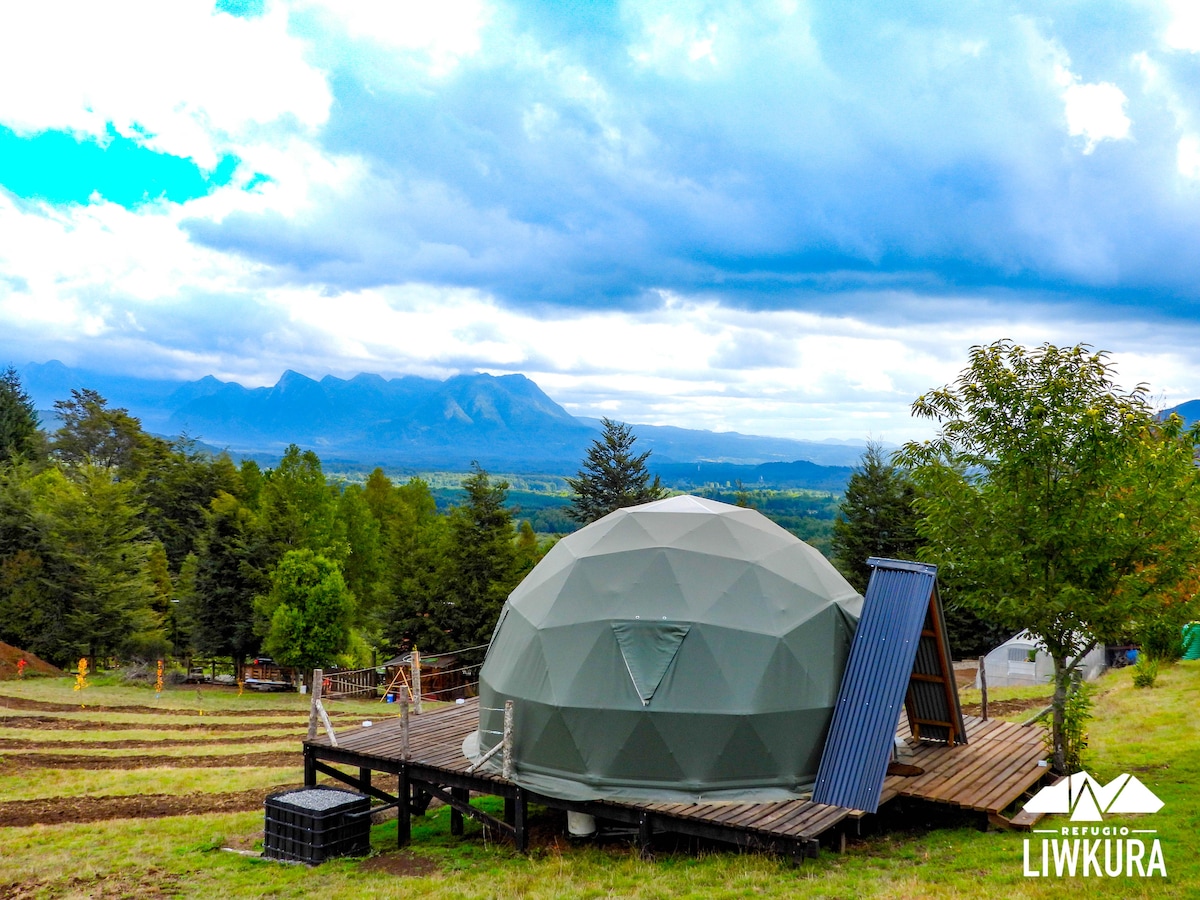 Primero agradecer por la intención de conocer mas al detalle nuestro acogedor Domo con vistas al Volcán Quetrupillán de día y al espacio cósmico por la noche. De acceso directo y rodeado de naturaleza autóctona, el domo esta completamente equipado para hacer de tu estadía en perfecta armonìa con el entorno natural. Rodeado de lagunas ocultas y otras de uso exclusivo, saltos de agua y cascadas a pocos minutos y el rio Huililco que con el sonar de sus aguas, entre sus piedras, dormirás cada noche
