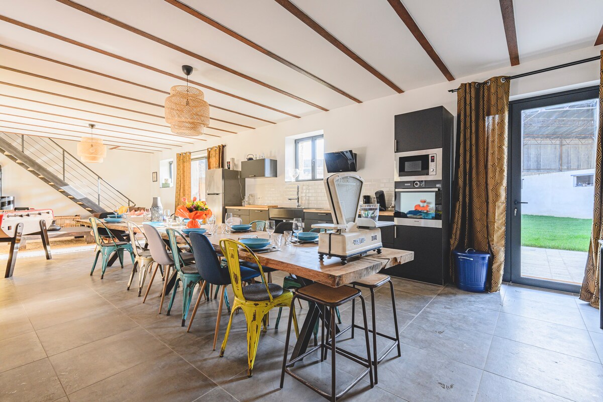 Descubra nuestro magnífico Loft de estilo industrial que combina autenticidad y modernidad. La pared de ladrillo a la vista, el altillo de acero, da un ambiente urbano y cálido. La madera aporta un lado vintage. El espacio es abierto, luminoso y funcional con una cocina equipada, una pequeña sala de estar acogedora y una mesa de comedor. Los toques de decoración, como la araña retro, agregan carácter y encanto. Un hermoso baño completa esta propiedad atípica para una estadía práctica.