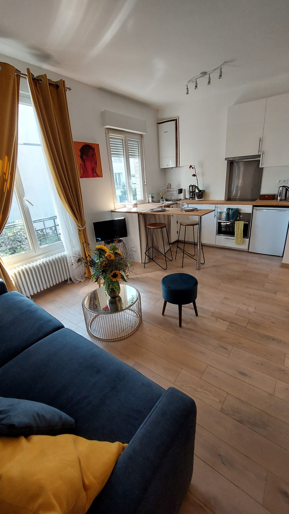 T2 muy bien organizado y equipado, luminoso. En un edificio y una calle tranquila de Vincennes. Línea de metro 1 y RER A a 5 minutos a pie Sitios olímpicos a 20 minutos (Arena Bercy, Vaires sur Marne, Paris Centre). Tiendas a 5 minutos a pie Castillo y bosque de Vincennes a 10 minutos T2 very well arranged and bright. In a quiet street in Vincennes. Metro line 1 and RER A at 5 minutes walk JO sites at 20min by transports (Bercy, Vaires sur Marne, city center) Château and Bois de Vincennes 10 minutos walk