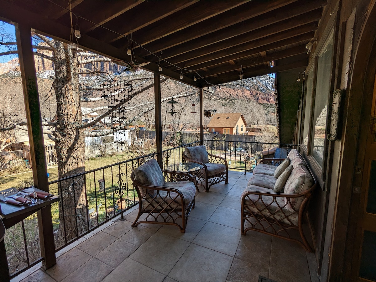 Cerca del parque Zion, las RESEÑAS DE NUESTROS HUÉSPEDES cuentan mejor nuestra historia. Tenemos una hermosa suite de 1250 pies cuadrados que cuenta con una BAÑERA DE HIDROMASAJE PRIVADA, así como una entrada privada, patio y área de césped con cascada. Este espacio es un sótano de nuestra casa y tiene una entrada sin llave, 2 dormitorios, cada uno con un televisor de 55 pulgadas, cocina pequeña, sala de estar con un televisor de 65 pulgadas, lavadora y secadora grandes y un baño de 2 habitaciones. Afuera hay un pozo de fuego de gas y una parrilla Blackstone. Está diseñado para un máximo de 4 personas. Lo siento, no fumar ni mascotas.