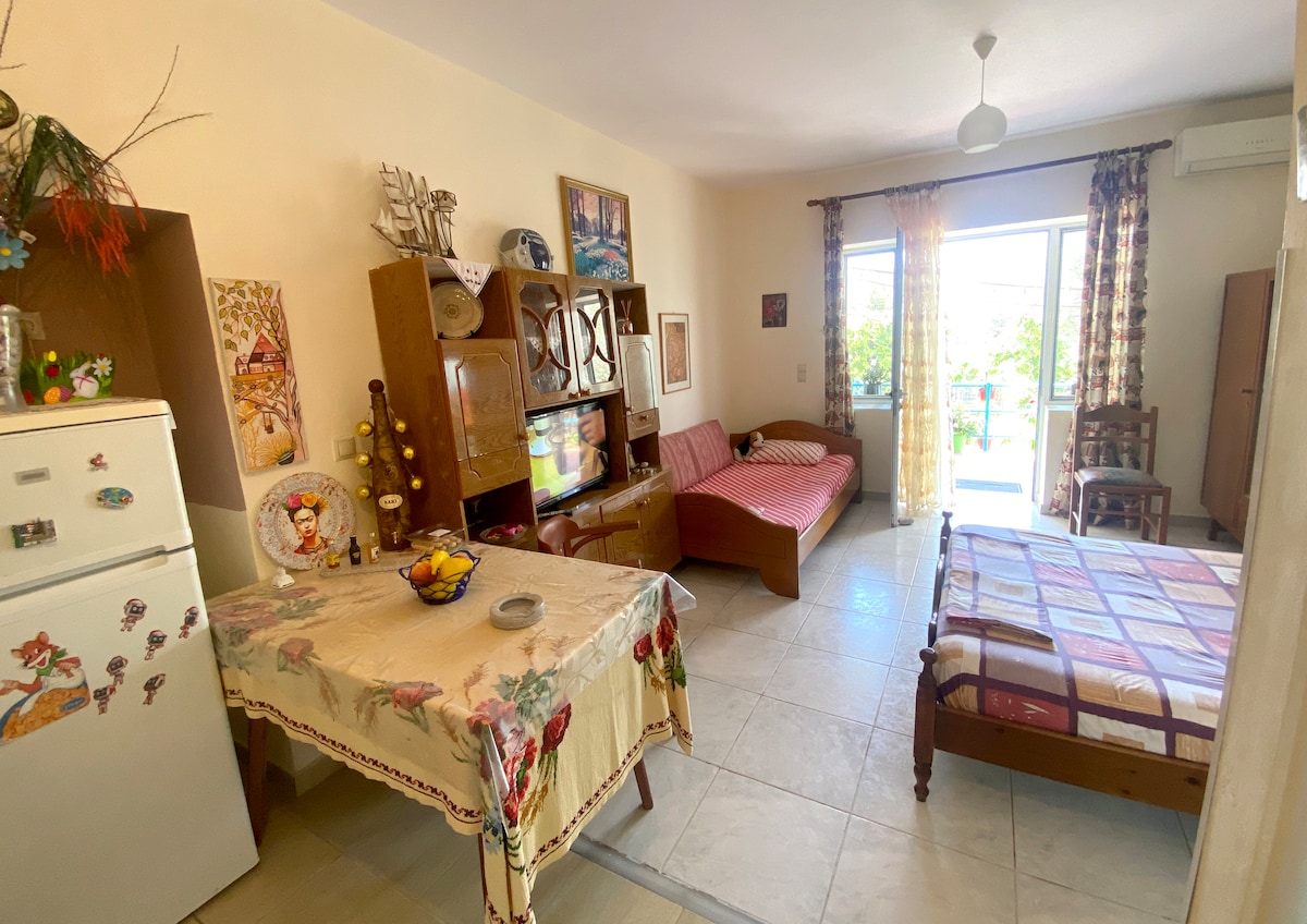 Apartamento de reciente construcción que combina una vista panorámica del mar y sus impresionantes puestas de sol, con un ambiente acogedor. Al entrar en el apartamento encontrarás una amplia sala de estar con un gran sofá que se puede transformar en una cama tamaño queen (para 2 personas). También encontrarás una cocina totalmente equipada. El dormitorio espacioso incluye una cama tamaño king y un armario. Además, hay un baño moderno. *Tanto la cocina como el dormitorio tienen acceso a balcones separados y contienen televisores y aire acondicionado.