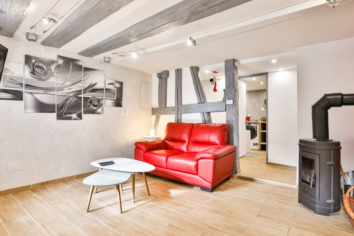 Pase su estancia en un entorno cálido y acogedor en el que es bueno tomarse su tiempo. Esta casa de campo de 50 m2 situada en la planta baja de una antigua granja de principios del siglo pasado, recientemente renovada, consta de una sala de estar con vistas a una cocina abierta equipada con todo lo necesario, un baño con ducha y un inodoro separados, y una habitación con cama doble. El salón está equipado con sofá cama. Una pequeña terraza orientada al sur está disponible.