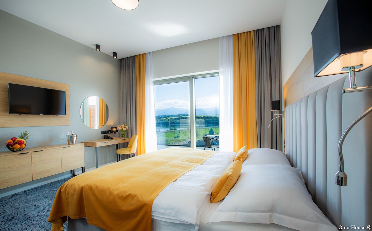 Klimatyzowany, piękny apartament na kondygnacji 0 typu Studio. Posiada salon z aneksem kuchennym, część sypialną z łóżkiem małżeńskim oraz łazienkę. Idealny dla młodych par z dzieckiem. Posiada osobne drzwi balkonowe z wyjściem na zewnątrz.