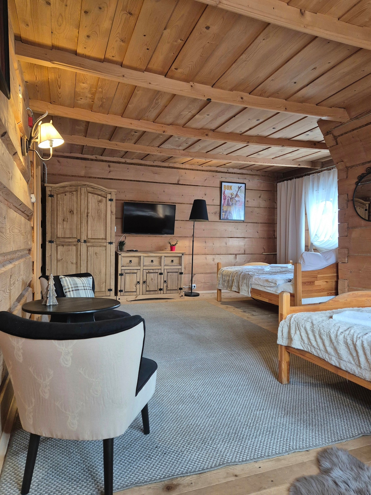 Estaremos encantados de alojarte durante un máximo de 7 camas durante todo el año. Para pasar tiempo juntos, hay una parte diurna que consta de salón y cocina. Dominar la sala de estar es una chimenea que crea no solo un ambiente romántico, sino que también se calienta en las noches frescas. Puedes sentarte en un cómodo sofá cama (dormir posible) mientras ves tus programas de televisión favoritos, pero la vista desde la ventana es más encantadora, directamente a la impresionante naturaleza de Orava y a la montaña Babia.