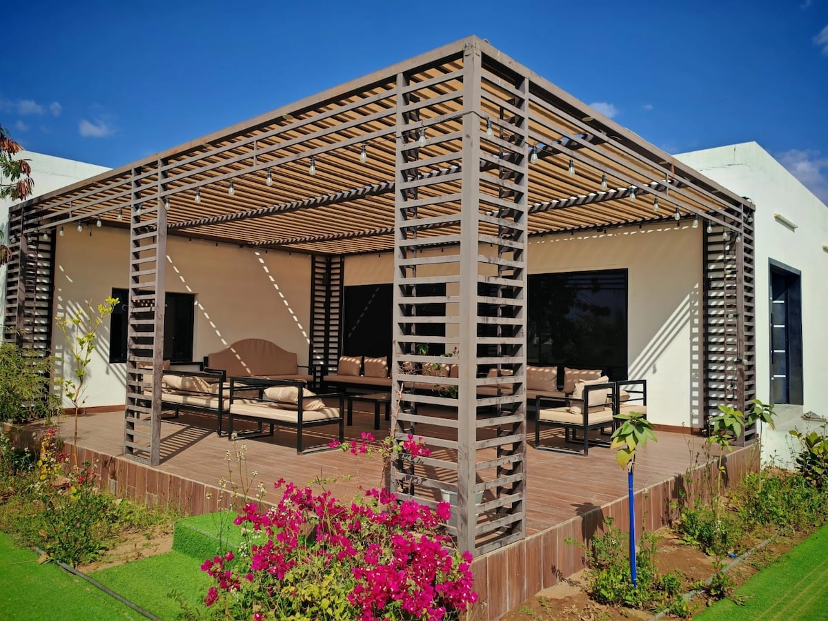 Esta elegante casa es perfecta para viajes para aquellos que buscan tranquilidad y recreación lejos del ruido. Está a 15 minutos del faro de Al-Ayja, a 5 minutos de Khour Grama y a 35 minutos de Turtle Farm y Ras Al-Hadd.