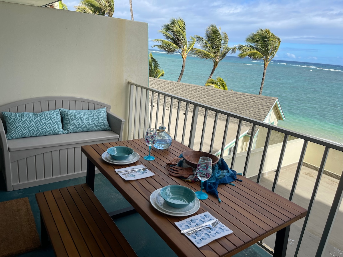 Hipnotizantes vistas al atardecer desde este apartamento frente a la playa de arena. Nada te separa de las aguas turquesas brillantes, salvo las huellas en la arena. El balcón tiene la altura ideal para observar tortugas. De noviembre a abril puedes ver una ballena. Esta vibrante tierra está llena de sorpresas. Incluso los delfines pasan por aquí de vez en cuando. Escapa de las multitudes de Waikiki para experimentar un verdadero estilo de vida hawaiano. Haz esnórquel, boogie board o surf justo fuera de tu puerta. Despertar al ritmo del océano puede cambiar tu vida para siempre.