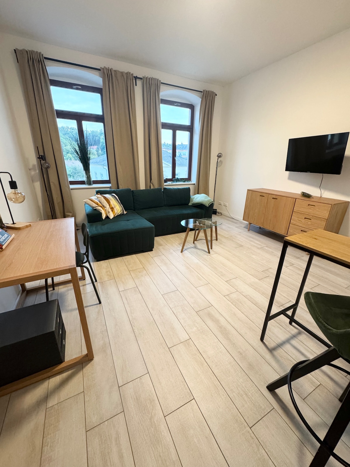 Nuestro moderno apartamento está situado en el casco antiguo, justo enfrente de la droguería Rossmann. Desde el apartamento se puede ver el hermoso Triebisch (río) y a pesar de la céntrica ubicación es muy tranquilo. En las inmediaciones se pueden visitar todos los lugares de interés de la ciudad a pie. La estación de tren de cercanías Altstadt está a 5 minutos. El aparcamiento en la puerta es de pago por 5 € al día, pero si se conduce 500 m más, es gratuito.
