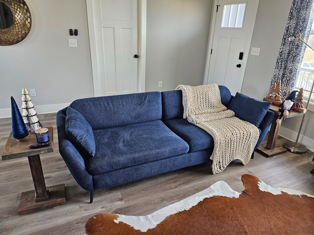 Cozy cottage with contemporary design is the perfect place to disconnect from city life and reconnect with nature. Located 7 minutes from the main street downtown. A bright and spacious living room, an open-concept kitchen and dining area, spacious and elegant bedrooms with ample storage space. Beautiful and fun patio overlooking the garden, where your kids can play mini-golf, enter their own tiny house, or swing with mom and dad. A queen-size inflatable bed is available for 9 and 10 guests!