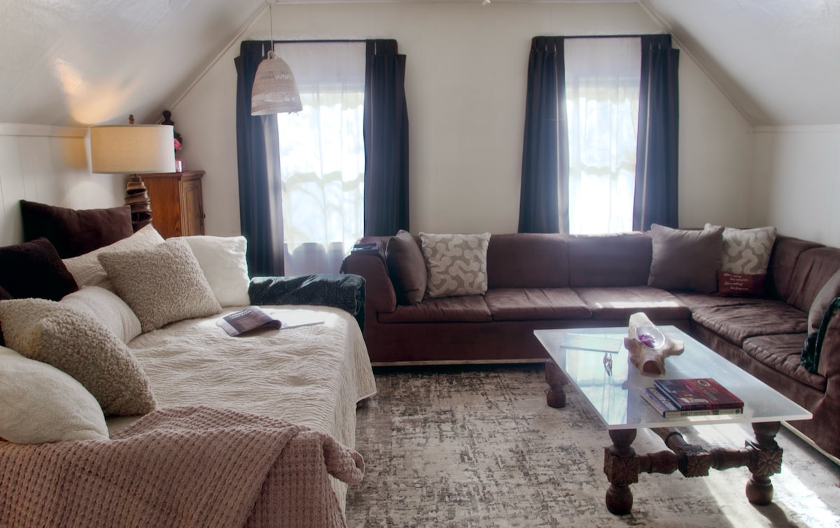 Keep it simple at this peaceful and centrally located guesthouse. This private space features a comfortable bedroom, an inviting living room with additional sleeping accommodations, a clean and functional bathroom, and a fully equipped kitchen for easy meals. Soft lighting and thoughtful details create a calm, welcoming atmosphere, ideal for relaxing after a day exploring the mountains or the Park City area.