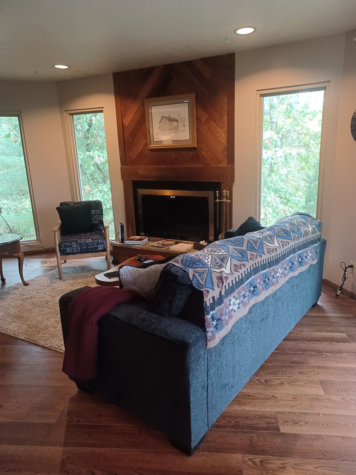 La cabaña tiene un loft con una cama doble y una individual. Hay una cama tamaño queen, baño completo y cocina pequeña (microondas, cafetera y mininevera) en el nivel principal. Los huéspedes pueden usar la cocina exterior que tiene nevera completa, gas, carbón vegetal y parrilla plana. También hay mesas y ducha exterior en la cubierta de 15x40'. El fogón es genial en esas frías noches de montaña. 10-20 minutos a la histórica Belpre, Marietta OH y Parkersburg WVA. Nota: Hay servicio de telefonía celular en la cabaña, pero NO wifi. La televisión es solo una antena.