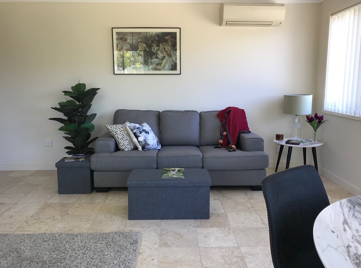 THE STABLE es un apartamento moderno para abuelas con 1 cómoda cama tamaño queen, cocina de planta abierta y sala de estar, aire acondicionado cerca de Hunter Valley Vineyards con solo 15-20 minutos en coche a todas las atracciones principales y lugares de conciertos. Nuestro apartamento está semi adjunto a nuestra casa principal, pero tiene entrada privada, también tenemos un mini dash Wonka que estará encantado de saludar cuando esté fuera de casa. Ten en cuenta también que el CHECK-IN es a las 2:00 p. m. y el CHECK-OUT a las 10:00 a. m. * Todas las toallas y ropa de cama son proporcionadas por mí :)