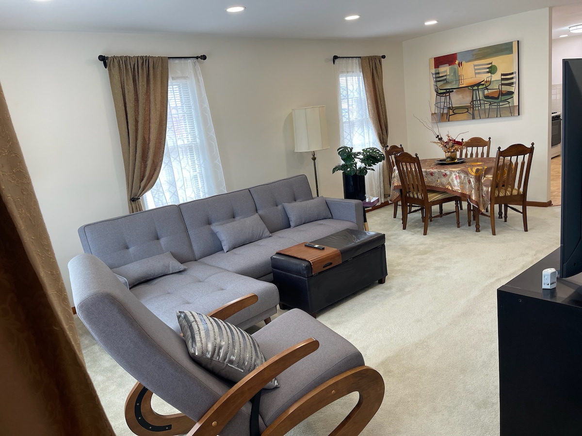 ¡Esta es una casa unifamiliar recién remodelada! ¡Es pequeña pero tiene todo lo necesario para disfrutar del tiempo con familiares y amigos durante tu estancia en la zona de Chicagoland! Hay dos dormitorios, cada uno con una cama tamaño queen, un baño actualizado, un comedor con capacidad para 6 personas, una acogedora sala de estar con un sofá cama tamaño queen extraíble de Crate & Barrel y una bonita cocina actualizada. Hay una lavadora y secadora nuevas en el sótano. También hay una bonita mesa de patio afuera en el patio privado. ¡Bienvenido!