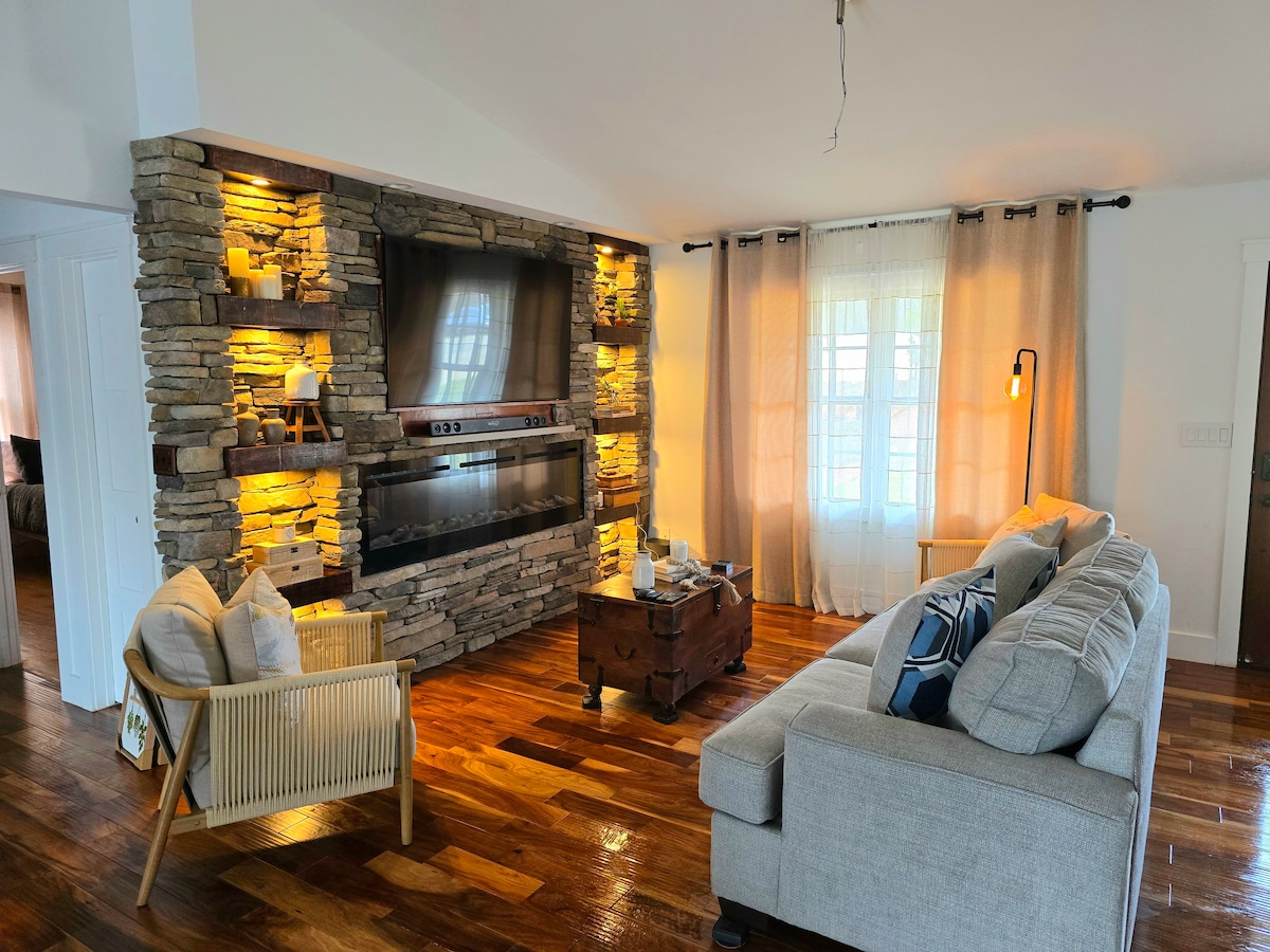 Enjoy this magical Appalachian sanctuary at the Rustic Royce Lodge. The Lodge is a private oasis boasting two private bedrooms with ensuite bathrooms, a gourmet kitchen, a large fenced-in back yard for your pups, and a fully screened-in front porch. Enjoy a coffee or local craft beer in the backyard of the Lodge while your pup frolics the yard or on the front porch while savoring the nature that surrounds the home.