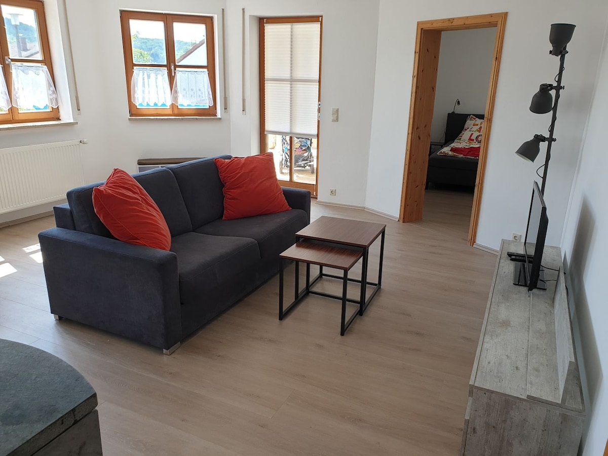 El tranquilo y luminoso apartamento de 104 m² se encuentra en las afueras, muy cerca del bosque. El alojamiento está situado en la planta baja de una antigua granja con aparcamiento gratuito delante de la casa. Plaza de garaje y carga para coches eléctricos disponibles bajo petición. Los niños menores de 12 años duermen gratis. Se admiten mascotas bajo petición. Debido al aumento de los gastos de limpieza por cada animal, se cobrarán 5 € por animal pequeño y de 8 a 10 € por animal grande. ¡El pago se realiza en el alojamiento!