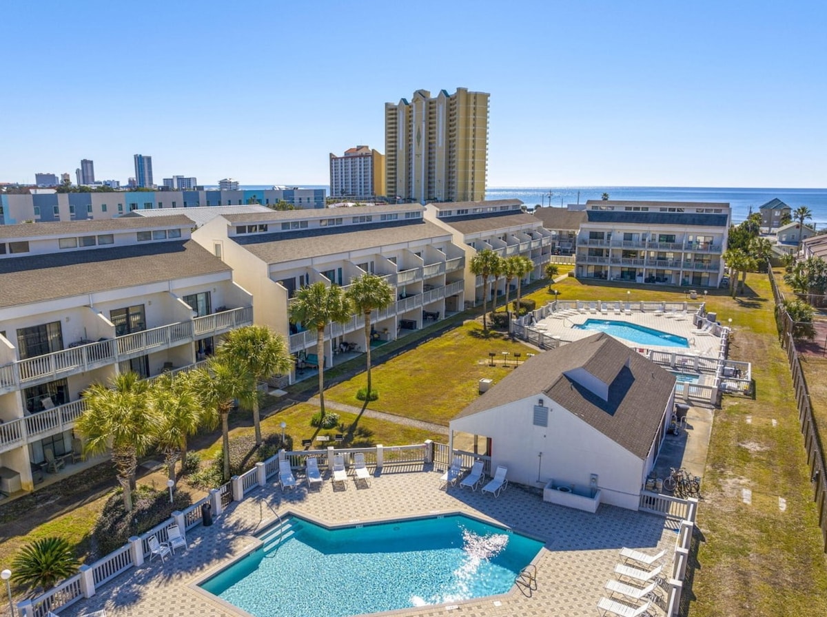 Apartamento de lujo moderno de mediados de siglo recientemente renovado con impresionantes vistas al golfo, a poca distancia a pie de Pier Park y Gulf World y un montón de comodidades como piscina climatizada, jacuzzi, gimnasio y minicine. Echa un vistazo a nuestros otros anuncios para 2 dormitorios y el estudio. El edificio está situado enfrente de Sharky's. La propiedad está frente a la playa, pero no en la playa.