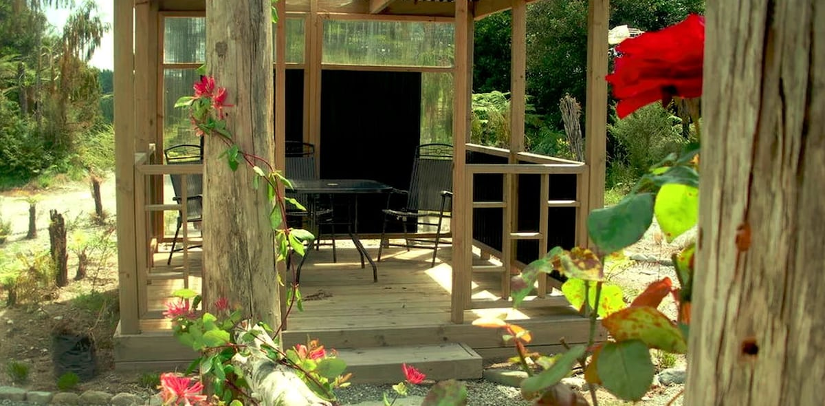 Ubicado junto al Parque Nacional Kahurangi, se encuentra el BnB más cercano al Heaphy Track Great Walk y los impresionantes Arcos de Oparara. Un refugio remoto y privado en el jardín con laberinto y jacuzzi fuera de la red (aviso previo). Esta pequeña casa autónoma para 2 personas fue una vez una casa de miel. La propiedad Ruru Nest está junto a un río y tierras de cultivo, a pocos minutos del pueblo de Karamea, con sus cafeterías y pubs. Comida local, paseos de conexión con la naturaleza disponibles como extras para completar tu estancia.
