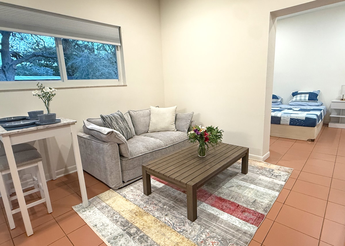 Private GUEST SUITE within host home with PIVATE access: The whole group will enjoy easy access to everything from this centrally located guest suite. Private updated shower bathroom. Queen sized bed with 55” tv. Living area / breakfast nook. Coffee maker, microwave and Small mini fridge included. Private patio space included. No smoking on premises. No events or parties.