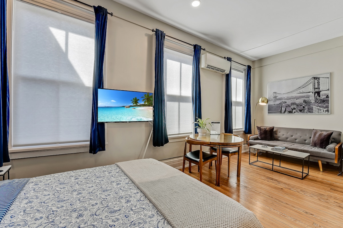 This beautiful loft space provides a unique getaway in Troy. It’s walking distance to RPI, Russel Sage, EMPAC, The Troy Music Hall, the Troy Farmers Market, and many of Troy’s restaurants. This is a studio apartment with a king size bed, wifi, kitchen with an electric cooktop and stand-alone shower. ***Important Accessibility Note*** While this space comes with beautiful views of nearby churches, it is located on the fourth floor with a very steep three flight walk up.