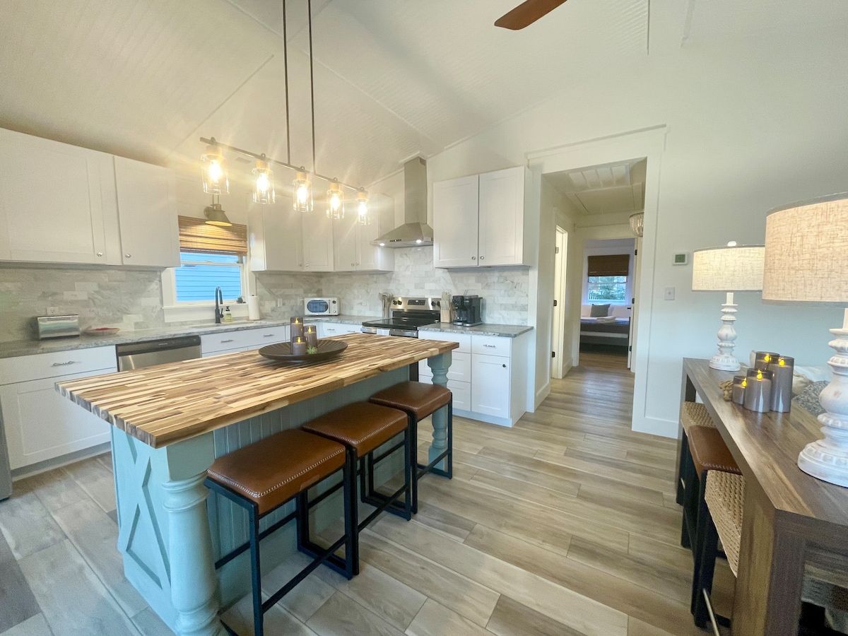 ¿Buscas una escapada de una parada? Con esta casa de 3 dormitorios, 1,5 baños y ducha al aire libre, puedes mantenerte activo con el uso de kayaks, bicicletas, tablas de remo, tablas de Cornhole y baloncesto. Aunque no está frente al mar, puedes ir caminando al lago en minutos para disfrutar de un baño en el muelle. Relájate en el jacuzzi bajo las estrellas y las luces en el oasis del patio trasero. Mira una película sentado junto al fuego o simplemente disfruta de noches tranquilas en el gran porche. ¡Esta casa de campo ofrece actividades, relajación y diversión para todos!