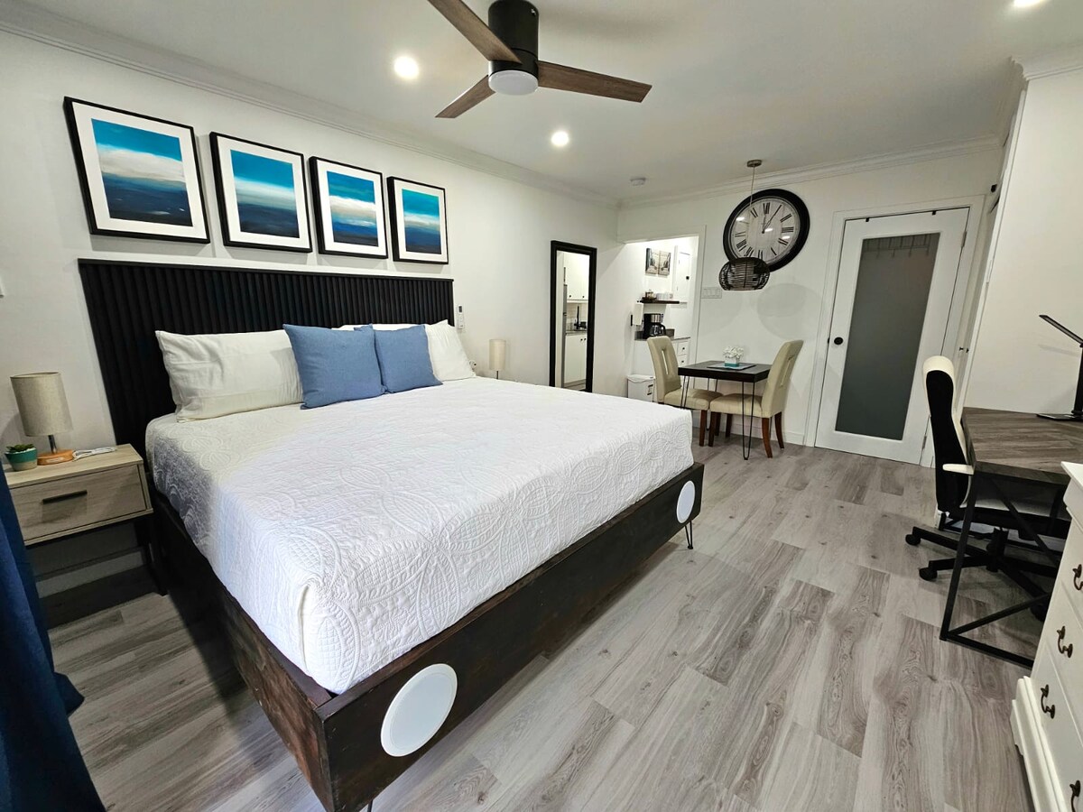 Estamos en pleno funcionamiento después del huracán Melissa con electricidad, agua y wifi. Relájate en este impresionante estudio con vistas al mar a solo 5 minutos del corazón de Ocho Ríos. El estudio está recién renovado con encimeras de granito en la cocina y el baño, y azulejos de porcelana en todas partes para una sensación lujosa pero hogareña. Disfruta de la vasta vista al mar y sumerge los pies en el agua a solo unos pasos del patio. Este estudio es el lugar perfecto para relajarse, escuchar el océano y disfrutar de la brisa.