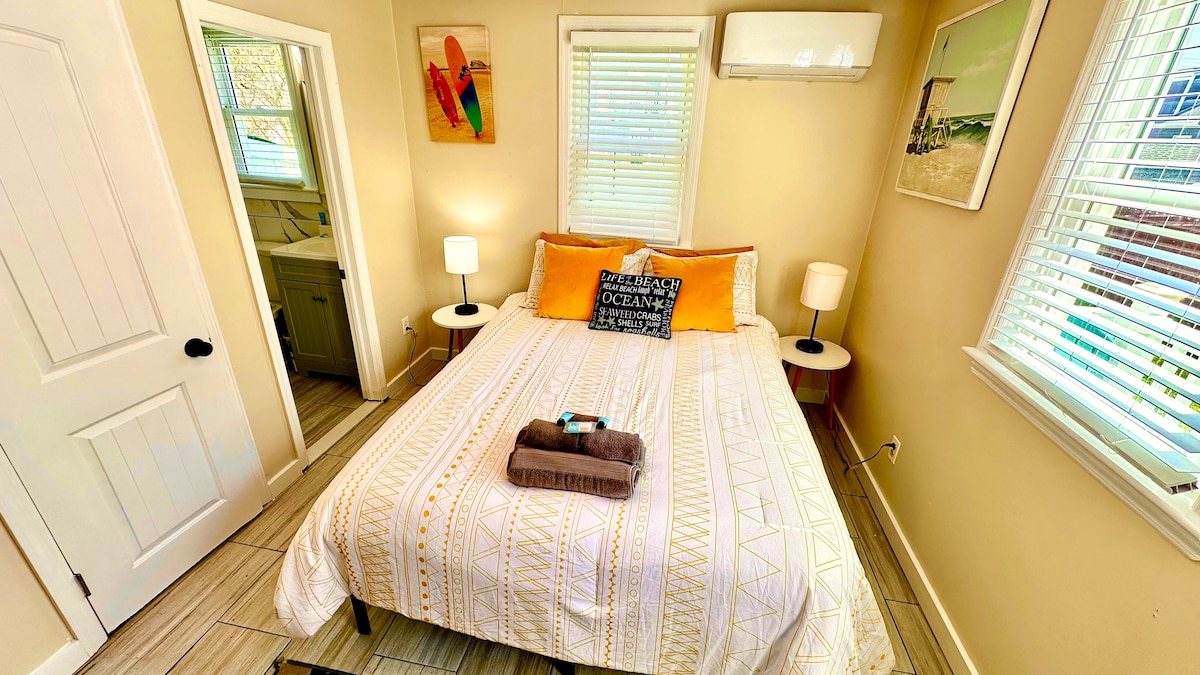 ¡Escapada elegante, romántica y acogedora! ¡A 2,5 cuadras de hermosas puestas de sol en una playa de bahía aislada! Ropa de cama, toallas Y toallas DE playa turcas incluidas. Esta pintoresca y peculiar casa es el lugar perfecto para un descanso para adultos (solo bebés que no gatean y niños de 5 años en adelante). ¡Disponible con todo lo que necesitas: jacuzzi, chimenea de gas, suministros de playa, bicicletas, carrito de bar, ducha al aire libre de temporada, 2 fogatas, mesa de picnic, mosquitero en el porche con mesa de comedor y sala de estar! ¡Bar de playa divertido y de temporada (Harpoons) a poca distancia a pie!