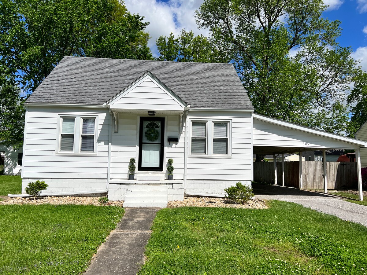¡Bienvenido a un acogedor oasis en Carterville! Esta casa que admite mascotas (¡tanto perros como gatos!) se encuentra en un barrio residencial tranquilo en una parcela esquinera. Completa con 2 dormitorios, un baño y un patio vallado, puedes extenderte y relajarte. Esta encantadora casa es una residencia principal cuando no se alquila en AirBnB. Se cuida con amor y atención a los detalles. Carterville es céntrica tanto para Carbondale como para Marion, y está a 15 minutos en coche de SIU y del bosque nacional Shawnee.