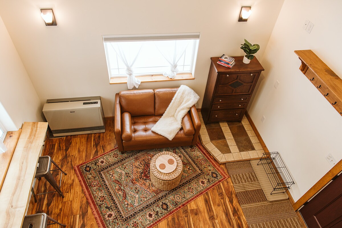Minicasa Raven's Roost en Talkeetna, Alaska 240 pies cuadrados de vida encantadora. Construida a mano por los anfitriones, esta cabaña cuidadosamente diseñada está ubicada en un hermoso entorno rústico en el bosque de Talkeetna. Es el lugar perfecto para una acogedora escapada de fin de semana o una base para tus vacaciones de aventura. Asegúrate de disfrutar de la cultura del hermoso centro de Talkeetna (a 5 minutos en coche de RR). ¡Experimenta la vida en una casa pequeña al estilo de Alaska! SE ADMITEN PERROS Cabaña seca con un baño exterior, ¡un baño exterior encantador y bien cuidado!