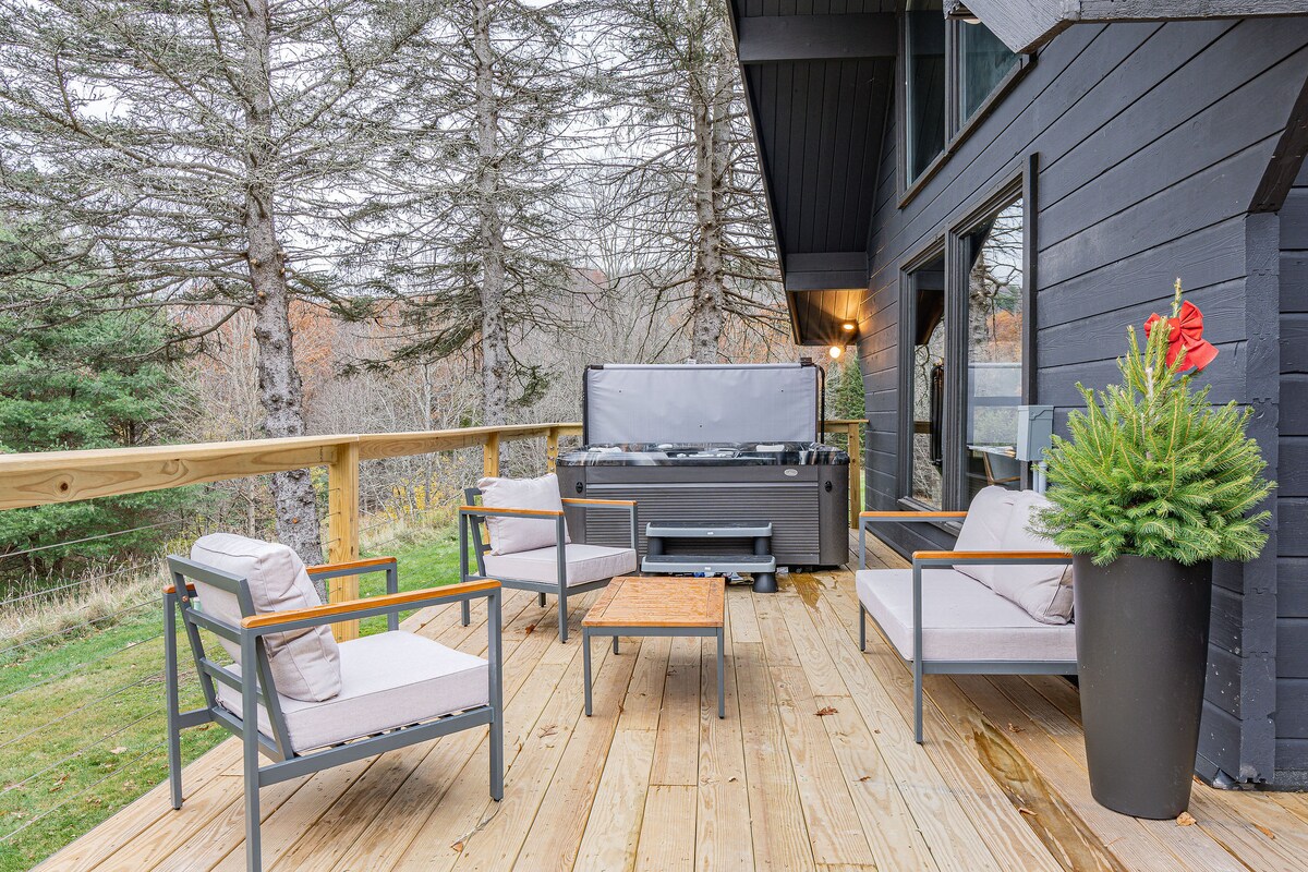 Chalet con vista a la montaña: aire acondicionado, jacuzzi, fogata, juegos