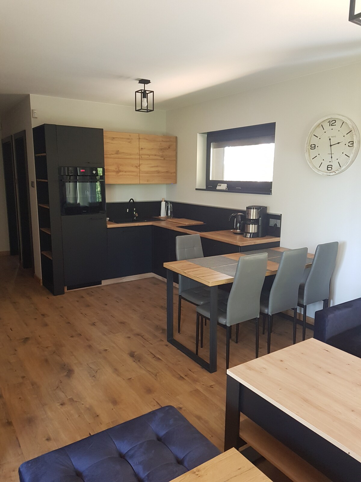 JolieFolie es un lugar único para relajarse en un ambiente idílico, cerca de la naturaleza. Es un espacio ideal para organizar eventos íntimos. Ofrecemos a nuestros huéspedes una casa rodeada de un jardín con una zona para hacer hogueras. El interior crea un espacio de dos plantas. La planta baja, con una superficie de 75 m², consta de: cocina totalmente equipada con comedor, dormitorio, baño con ducha y salón. La primera planta es una entreplanta acogedora, un lugar ideal para relajarse (50 m²), con un dormitorio y un baño (bañera). Alojamiento para grupos: 6-8 personas.
