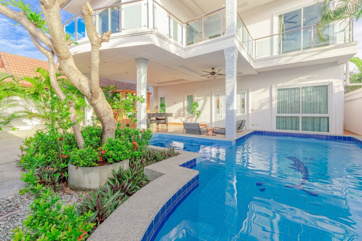 Villa J10 de 5 dormitorios con piscina y sauna cerca de la calle peatonal de Pattaya (desayuno flotante y servicio de barbacoa disponibles, con cargo adicional)