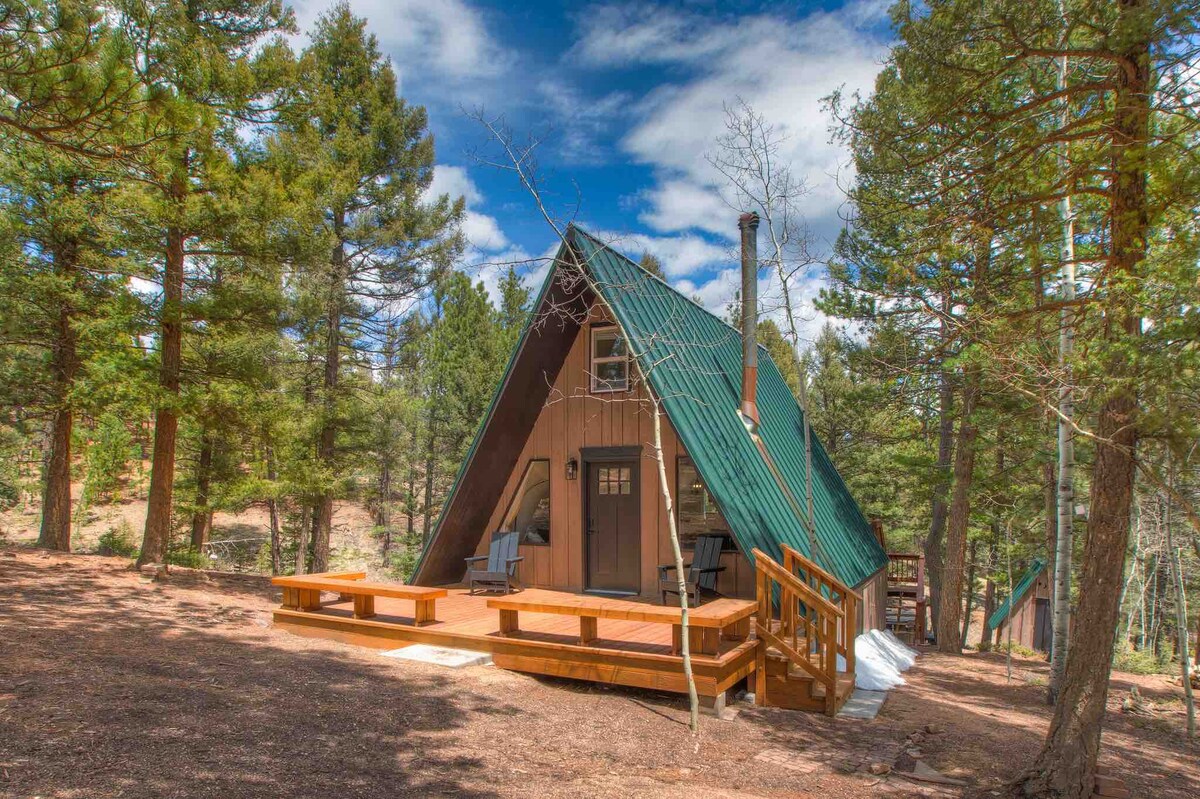 Cama tamaño★ king (colchón Helix) + muchas mantas acogedoras Se admiten★ perros. ★ 4 acres privados y arbolados + vistas a las montañas. ★ Jacuzzi ★ Estufa de leña con abundante leña y suministros para encender el fuego. A ★ 1 hora de Colorado Springs, a 2 horas de DIA. Esta encantadora cabaña de estilo alpino vintage está situada en el bosque junto a una carretera tranquila, con vistas a la montaña y una inmersión natural. Es probable que veas más ciervos, pájaros y ardillas que otros humanos, pero si quieres aventurarte, ¡Divide está a 18 minutos!