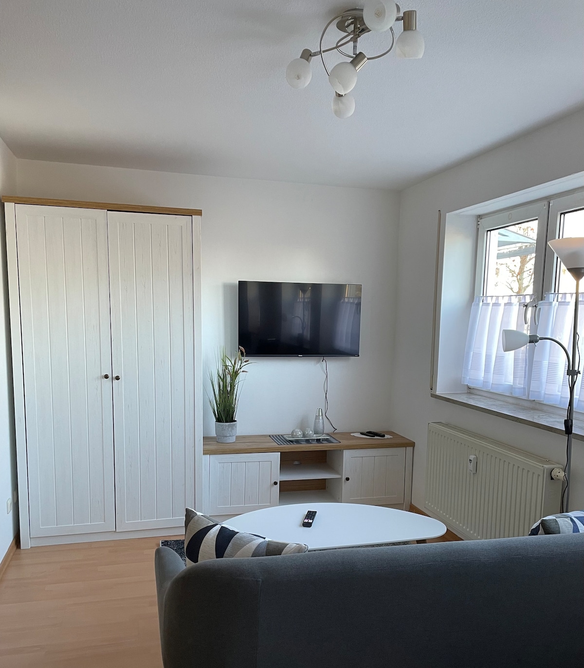 Apartamento de dos habitaciones totalmente amueblado,para no fumadores, 1er piso, 62m²,con balcón grande adicional con mesa,sillas,sombrilla + parrilla eléctrica. La cocina está equipada con nevera,congelador, microondas, hervidor, cafetera, tostadora, platos,cubiertos y algunas especias. Baño con bañera+ducha,albornoz,lavadora(desde 1 baño gratuito), calefacción por suelo radiante. En la sala de estar hay TV VÍA SATÉLITE, REPRODUCTOR de DVD y sofá con función de cama. Dormitorio con cama doble y armario grande. Alquiler de bicicletas bajo petición.