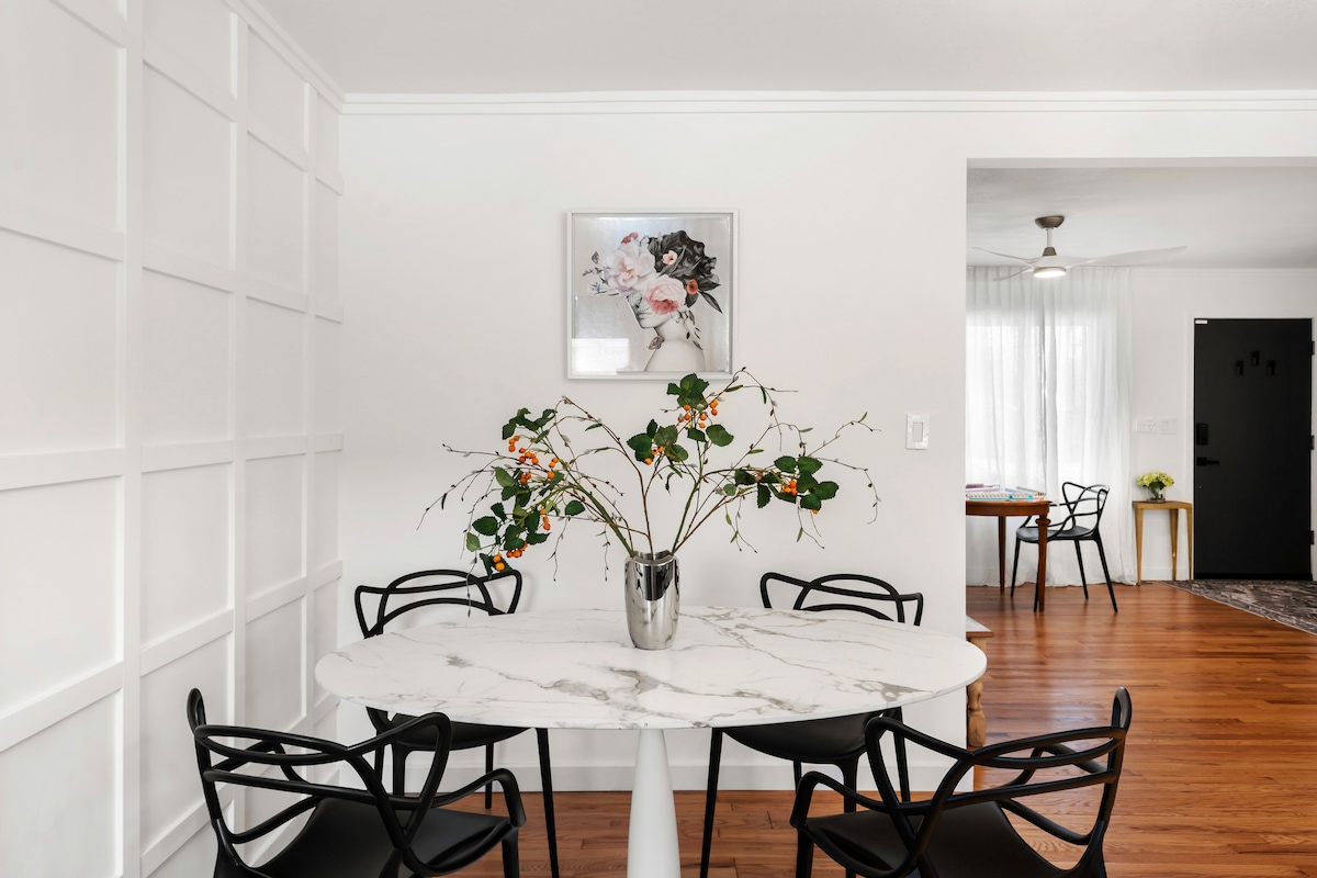 ¡Espacio impresionante, muchas comodidades y una ubicación perfecta! La Orange Cottage es una casa inmaculadamente renovada con 4 dormitorios y 3 áreas comunes (¡sala de estar, solárium y sala familiar!). ¡Ofrece un jacuzzi para 8 personas y una sauna infrarroja para 3 personas! A poca distancia a pie de las tiendas de Prairie Village y a pocos minutos de KC 's Plaza y el centro de la ciudad. ¡Todas las camas son tamaño king con colchones de calidad para el descanso perfecto! Cocina totalmente equipada con café de marca de calidad para las mañanas perfectas.