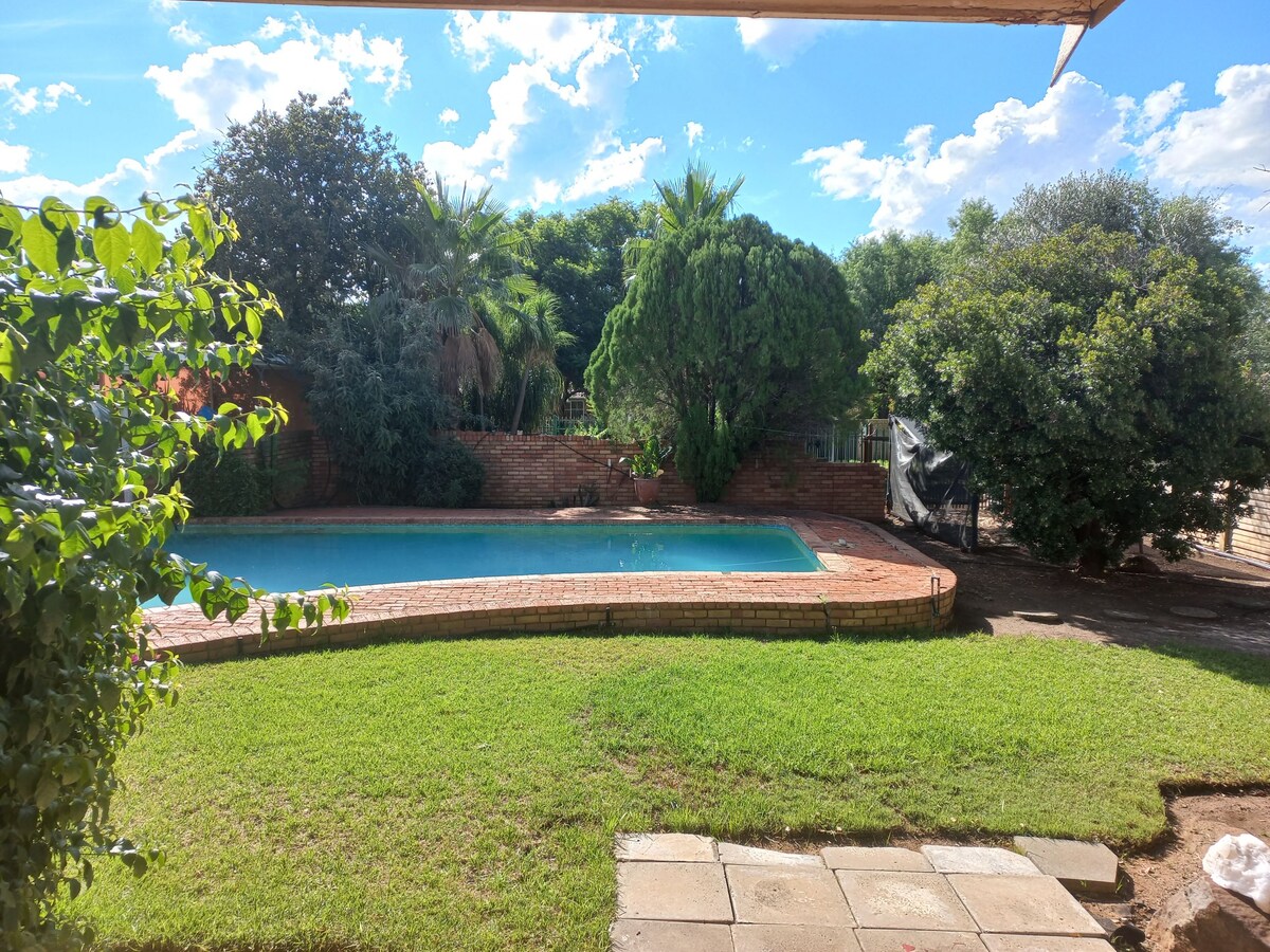 Tu familia estará cerca de todo cuando te hospedes en este lugar céntrico. Está a menos de 1 km de la N1, justo al lado de la calle principal de Bloemfontein, Nelson Mandela Drive. A 2,4 km de la Universidad del Estado Libre. A menos de 5 km de hospitales y escuelas principales de la ciudad. Estamos a 300 metros de un campo de prácticas, para golpear algunas pelotas de golf. Rutas para correr seguras. Hay otro Airbnb en la propiedad desde 2019. ESTA NO ES una CASA PARA FIESTAS Y pídeles que respetes A los vecinos Y otros huéspedes DE Airbnb.