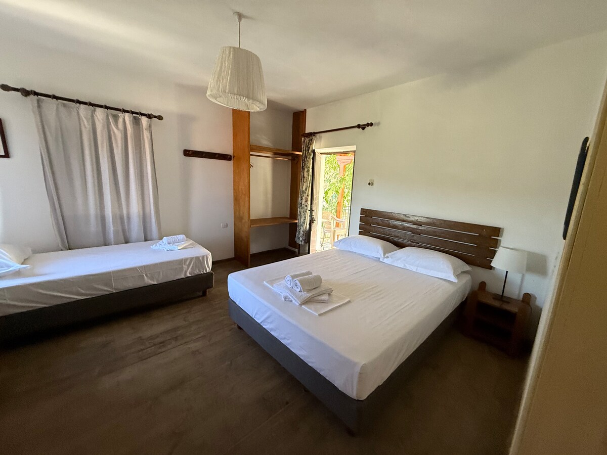Una pequeña casa familiar de verano (32 metros cuadrados) situada en la playa de Megali Ammos. Despiértate y salta directamente al mar, duerme con el sonido de las olas. Zona de estar exterior donde puedes almorzar o cenar a la sombra de los granados y la palmera. Tumbonas en la terraza para relajarte y algunas que puedes llevar a la playa de abajo. Bonitos cafés y restaurantes situados cerca de la playa. Ten en cuenta que la casa Seahouse comparte una terraza con la casa de al lado.
