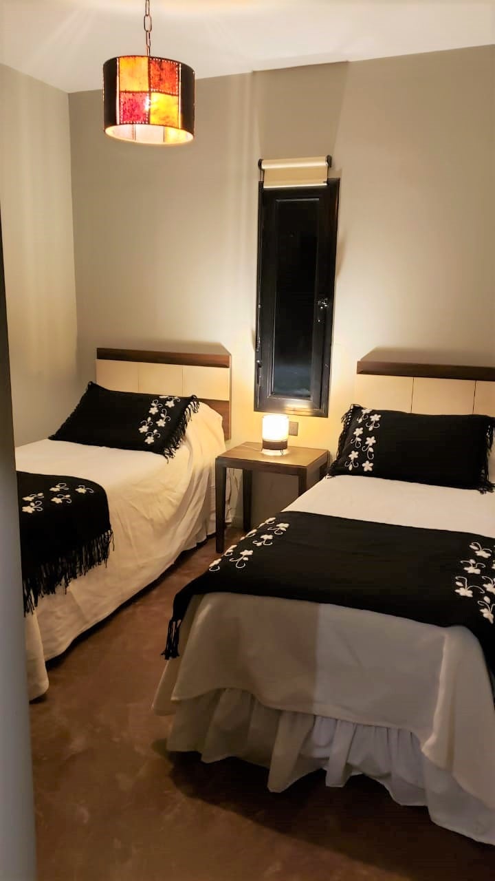 Bienvenidos a nuestro moderno y espacioso departamento en Jujuy, para cuatro personas. Este espacio impecable ofrece detalles cuidados y una exquisita decoración. Situado en un edificio nuevo, todos los muebles y accesorios son de primera calidad. Disfruten de una ubicación privilegiada a solo 5 minutos del centro de Jujuy y a metros de la Ciudad Cultural, sede de eventos destacados. Experimenten comodidad y elegancia en cada rincón de este refugio contemporáneo. ¡Su escapada perfecta espera!