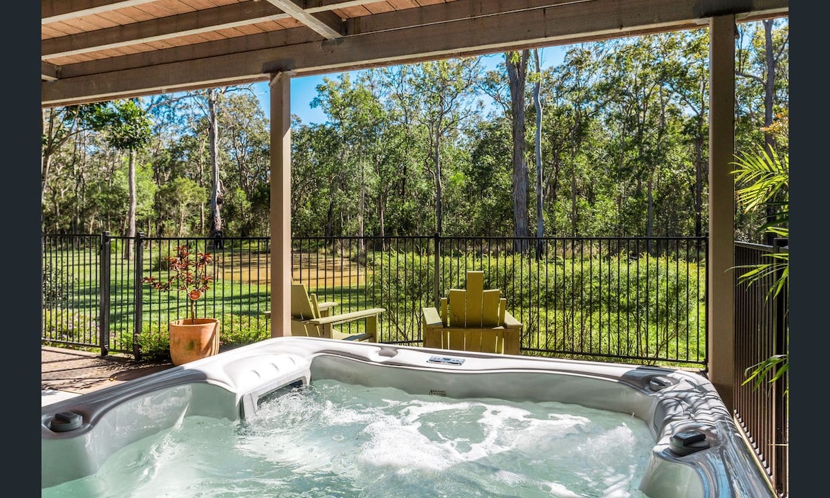 Bungawalbin Retreat is the perfect place to relax and unwind with family and friends. Away from it all with plenty of bushwalks to explore, fun in the yard, pick your own veggies, relax in the spa or go for a swim in the creek which is a short walk/drive away. Finish the day with marshmallows by the fire, listening to the birds and watching the sun go down. Dog friendly and ready for the entire family to enjoy. Additional guests camping on the property may be permitted on request.