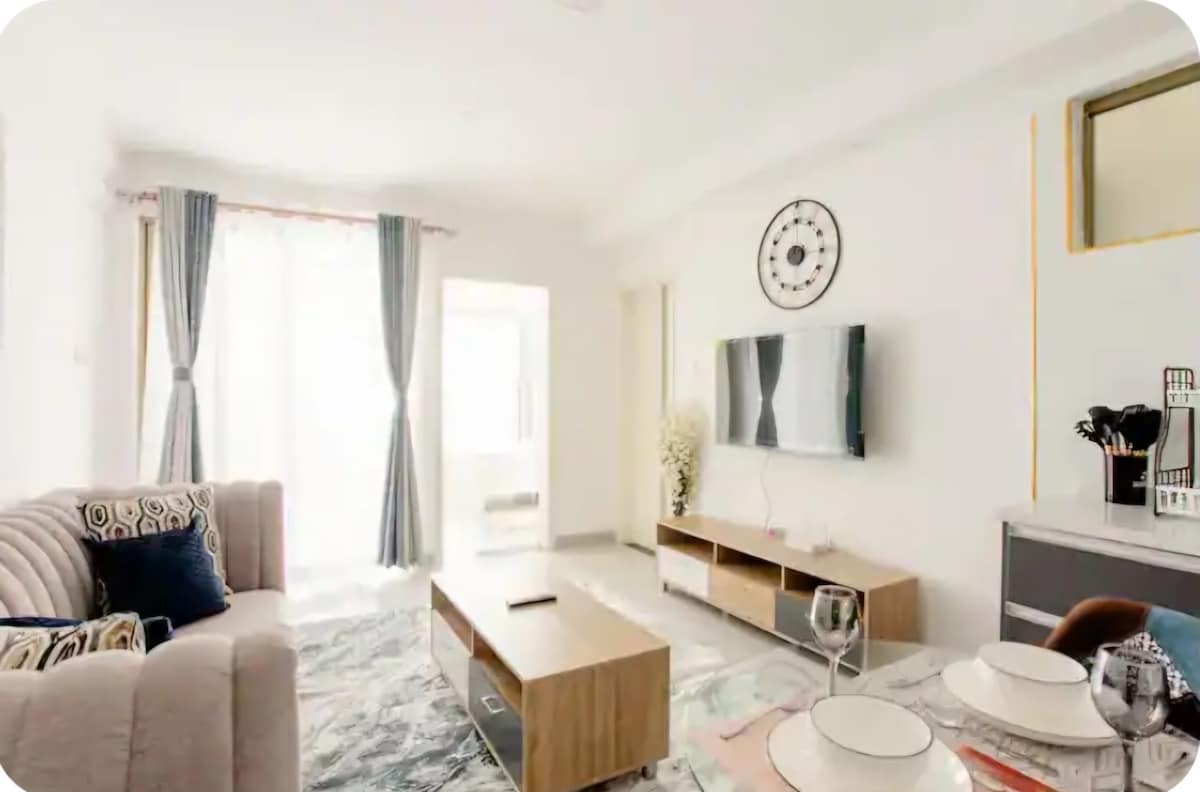 Step into calm at this modern two-bedroom apartment in Riverside One, designed for comfort and ease. The space features a bright living area, private balcony, two restful bedrooms, and a fully stocked kitchen perfect for home-cooked meals. Guests enjoy access to a heated pool, gym, and kids’ play area. Located in upscale Westlands Riverside near top dining, malls, and UN offices—secure, peaceful, and convenient.