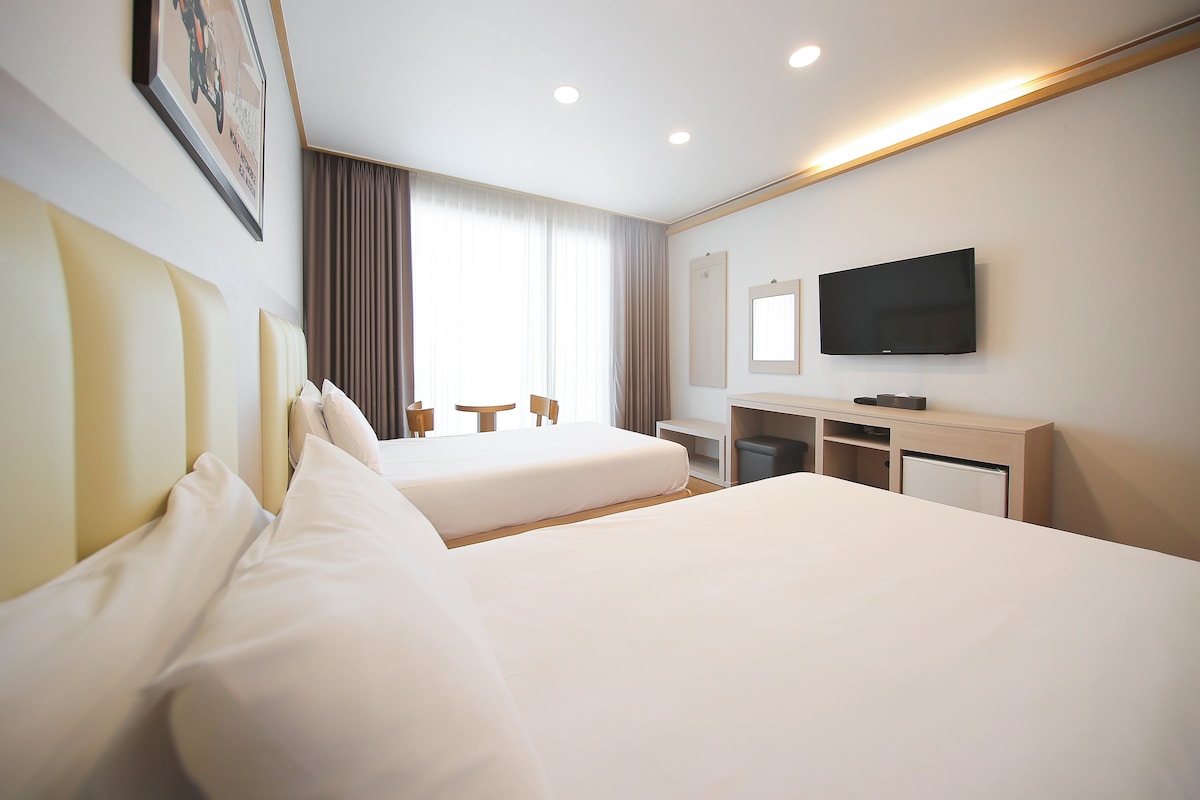 09. Habitación con dos camas cerca del aeropuerto de Jeju (Bravo-inn)