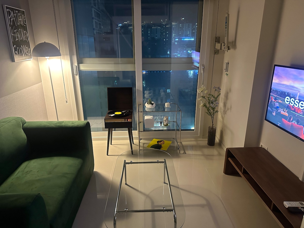 il Porto⚓️ Bringing back host's experience as a fashion designer in Italy, old port-themed wall deco & nautical pillows Main colors _Ivory/Gray+Wood/Navy Mood_Neat, timeless 🕯️Custom Lighting *Dual LED bar *High-rise wall frame (7m-long multicolor LED) 🛌 *King bed 📺 4K Chromecast TV 🍿 FREE Netflix 💧FREE water, ‘LG PuriCare’ * E-Mart (2F., largest Daiso store) 180m ⚠️Pets not allowed / Gym & Swim not in service (under Prep.)
