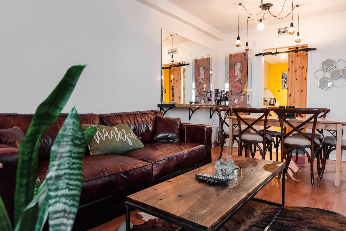 ¡Un loft urbano luminoso y elegante en el corazón del centro de la ciudad! Esta suite llena de sol cuenta con techos altos de 12 pies, impresionantes ventanas del piso al techo y elegantes pisos de madera. Relájate en el sofá extragrande, cena en la mesa moderna y cocina en la cocina totalmente abastecida con electrodomésticos de acero inoxidable. Duerme profundamente en una lujosa cama tamaño queen Westin Heavenly y refréscate en el baño de mármol tipo spa. ¡Incluye lavandería en la suite, wifi de alta velocidad y una ubicación inmejorable cerca de la vibrante King Street West!
