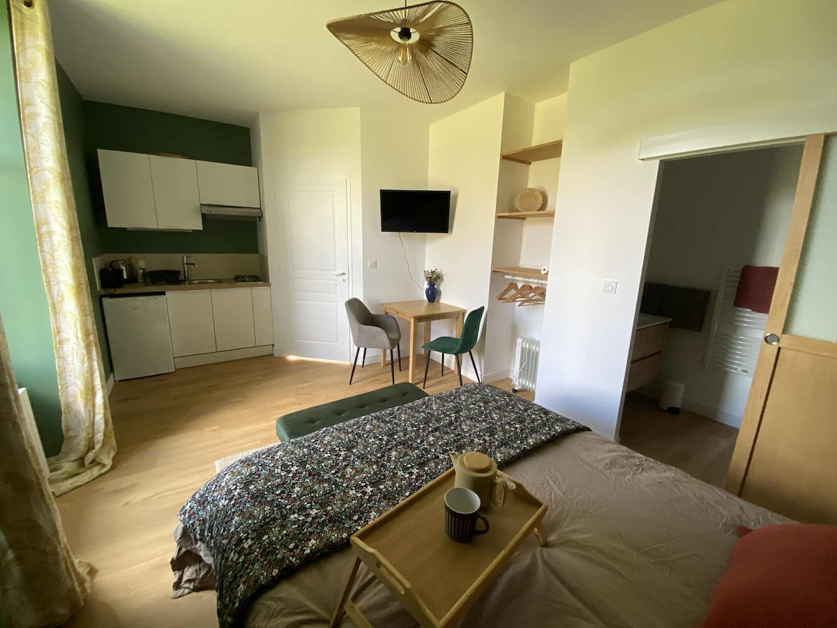 Bienvenido a nuestro encantador loft de 70 m², idealmente ubicado en el centro de Cholet. Perfecto para una escapada romántica, nuestro alojamiento cuenta con un ambiente cálido e instalaciones de primera gama. A solo 25 minutos del famoso parque Puy du Fou, es la base ideal para descubrir la región mientras disfrutas de un entorno relajante e íntimo.