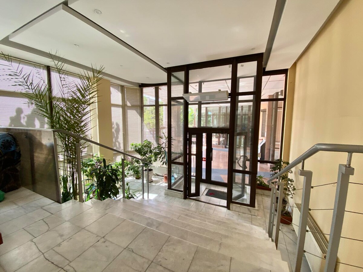Ven aquí con toda la familia. El departamento está ubicado en la zona turística de Odessa, 12ª estación de la Gran Fuente, a 5 minutos del mar. Se puede decir que la casa está en el territorio del jardín botánico, tan verde y excelente diseño del paisaje. Todo el complejo consta de edificios de poca altura, con seguridad las 24 horas, estacionamiento subterráneo. Parque infantil, zona de barbacoa, numerosas zonas de recreo. El apartamento está en el cuarto piso, con una vista desde las ventanas panorámicas y el balcón a un hermoso patio con una fuente.