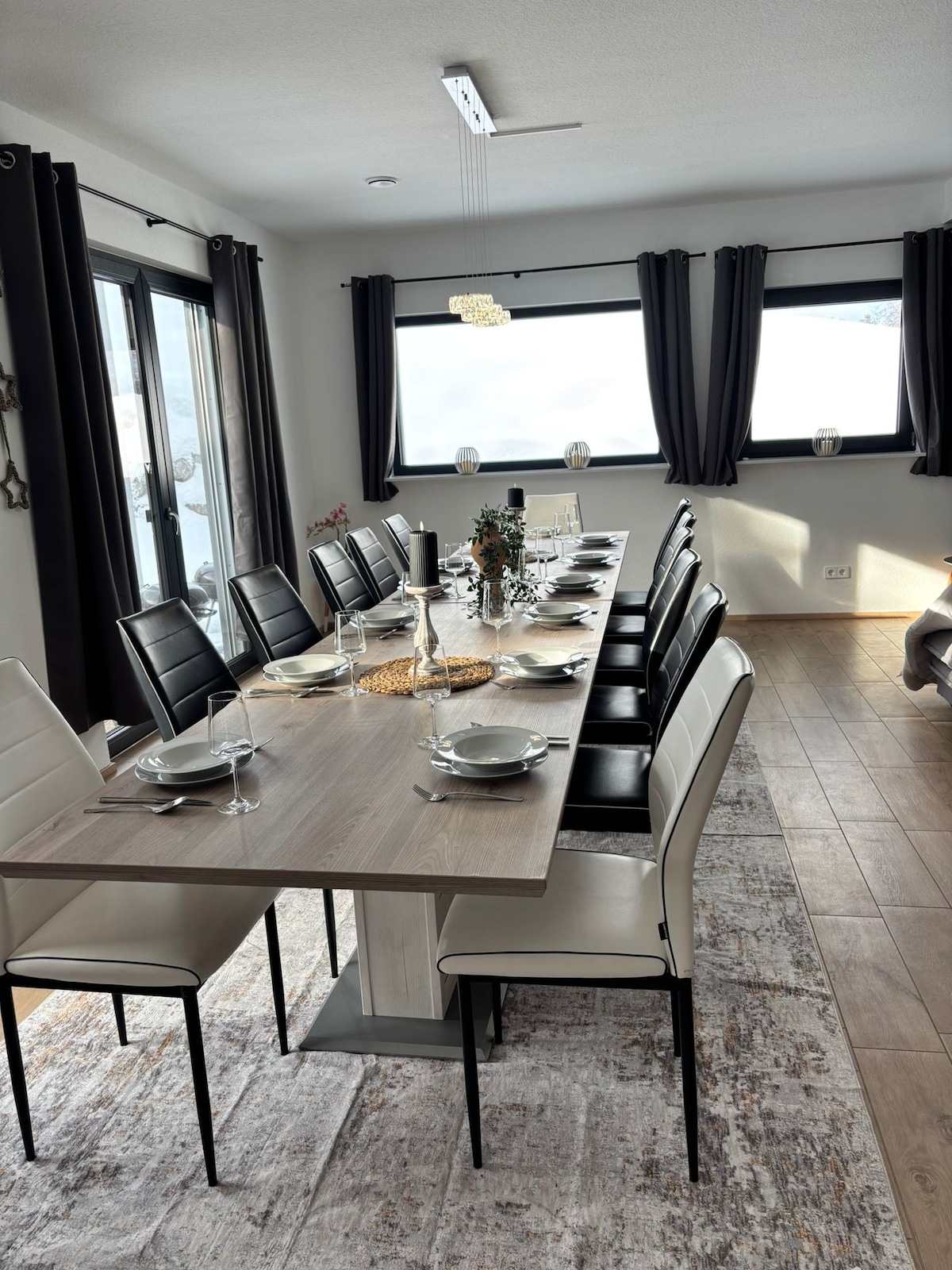 Our homey mountain retreat used to be my grandparents' place and has been completely renovated just recently. We wanted to preserve the snug and cosy traditional atmosphere with a combination of traditional furniture and a more modern almost minimalistic kind of interior. We kept parts of the traditional furniture and a beautiful collection of my granddad's handcarved portraits on the ground floor and combined it with bright wood and white on the first floor to leaven the atmosphere.