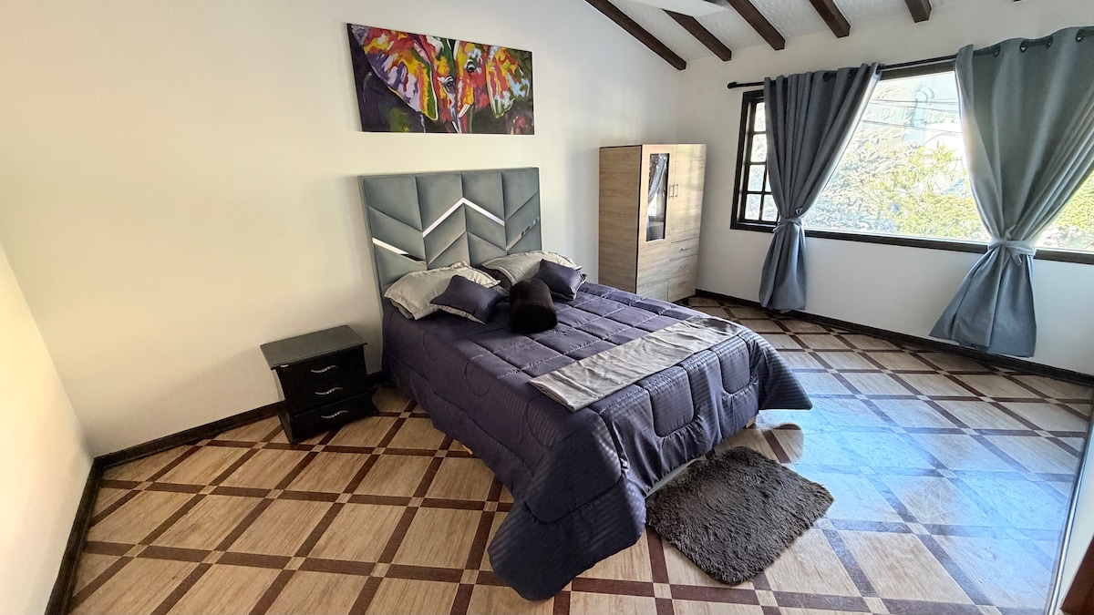 La casa es patrimonio arquitectónico, su construcción data de hace 212 años. Cuenta con una cama tamaño King Size con colchón ortopédico y sábanas de lujo con cobijas de plumas y calefacción. Es perfecta para familias y al lado tiene una habitación conectada por puerta interna que posee una cama doble. Tiene un baño privado muy amplio. Tenemos espacios como BBQ, lago, zona de fogata, tejo, rana, jacuzzi (pago adicional), wifi, parqueadero. Ubicados a 1 hora de Bogotá con fácil acceso.