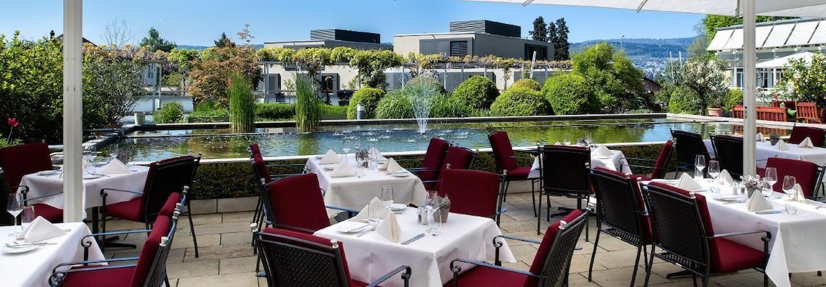 Disfruta de tu estancia en el TERTIANUM Park Residence en Meilen, junto al encantador lago de Zúrich. Nuestros exclusivos apartamentos de 2,5 y 3,5 habitaciones son ideales para vacaciones o estancias de negocios temporales. Con comodidades y numerosas instalaciones, te prometemos una experiencia inigualable que permite tanto la relajación como un estilo de vida activo. Ya sea por un período corto o prolongado, nuestra residencia está diseñada para satisfacer tus necesidades y garantizar una estancia inolvidable. Dentro del TERTIANUM Park Residence, encontrarás una variedad de comodidades y bienestar. La piscina cubierta con temperatura de baño terapéutica y el uso de salas de gimnasia y equipos, ambas con acceso a zonas exteriores privadas, hacen posible un descanso relajante. Nuestra oferta de bienestar se completa con cabinas de masajes, sauna y servicios de fisioterapia, todo lo cual contribuye a una mayor sensación de bienestar. Además, la práctica médica de la Dra. Melanie Bührer está disponible para la atención médica de los huéspedes. El área al aire libre complementa las ofertas de alta calidad de la residencia del parque con un restaurante del parque con una terraza mediterránea, que invita a relajarse en el entorno verde. Servicios adicionales como salón de belleza, peluquería, cuidado de los pies y podología garantizan tu bienestar externo. Para los amantes de la cultura, la biblioteca interna ofrece una rica literatura. Los alrededores abren numerosas actividades de ocio, desde actividades deportivas hasta explorar la diversidad urbana de Zúrich, fácilmente accesible en automóvil, tren o barco.